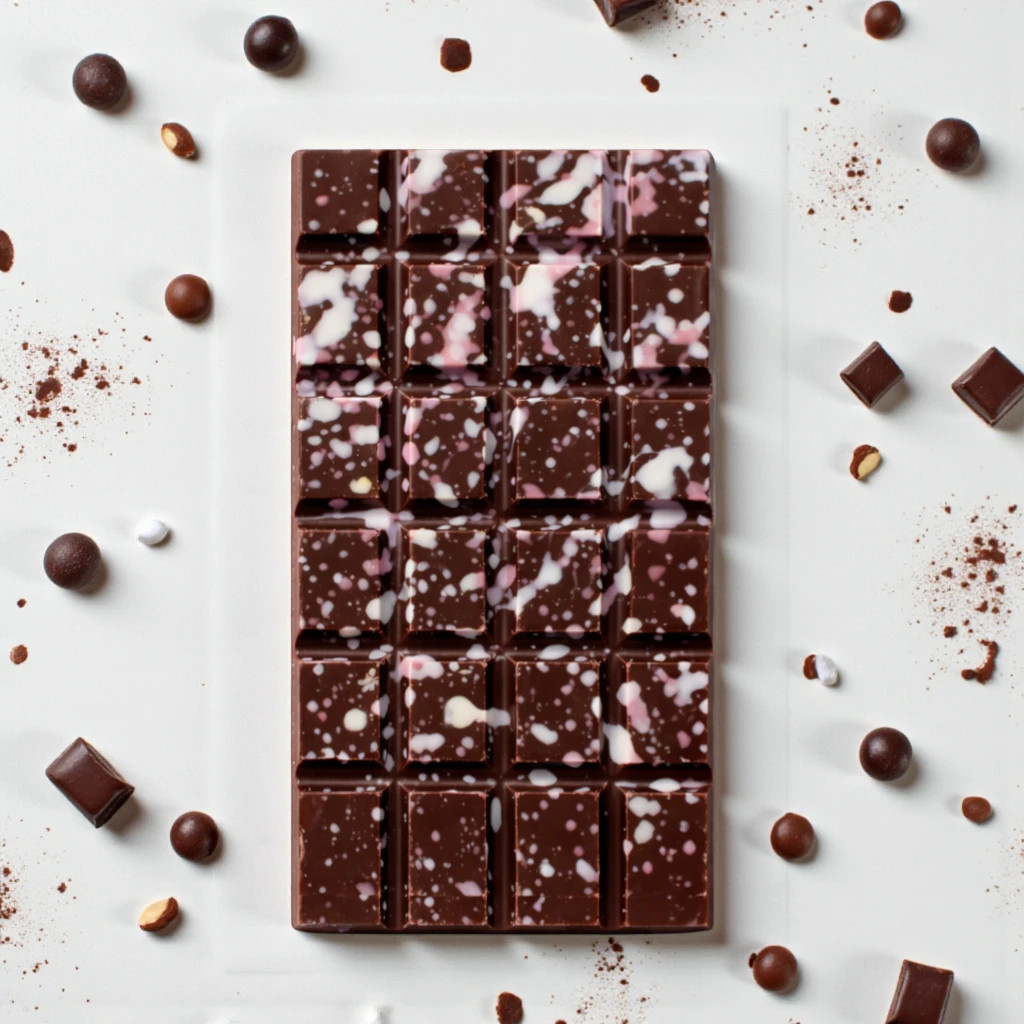 A liofilizált málna friss gyümölcsössége és enyhe savassága tökéletesen ellensúlyozza az étcsokoládé karakteres ízét, miközben a ropogós mandula gazdag, diós jegyeivel teszi teljessé az ízélményt.
