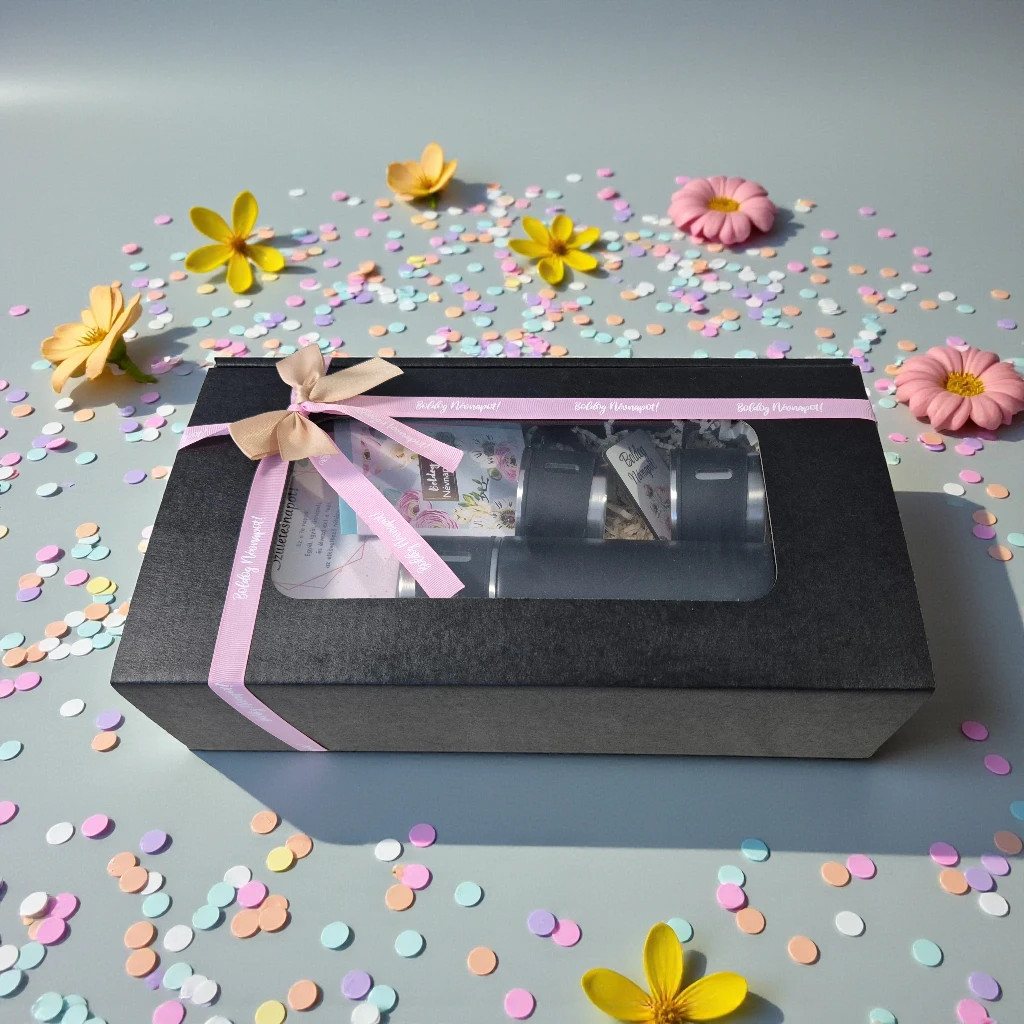 - Fekete díszdoboz belső térkitöltővel / Elegáns, ajándékozásra kész csomagolás, amely esztétikusan rendezi a termékeket, így az ajándék azonnal átadható.