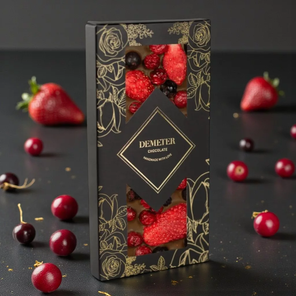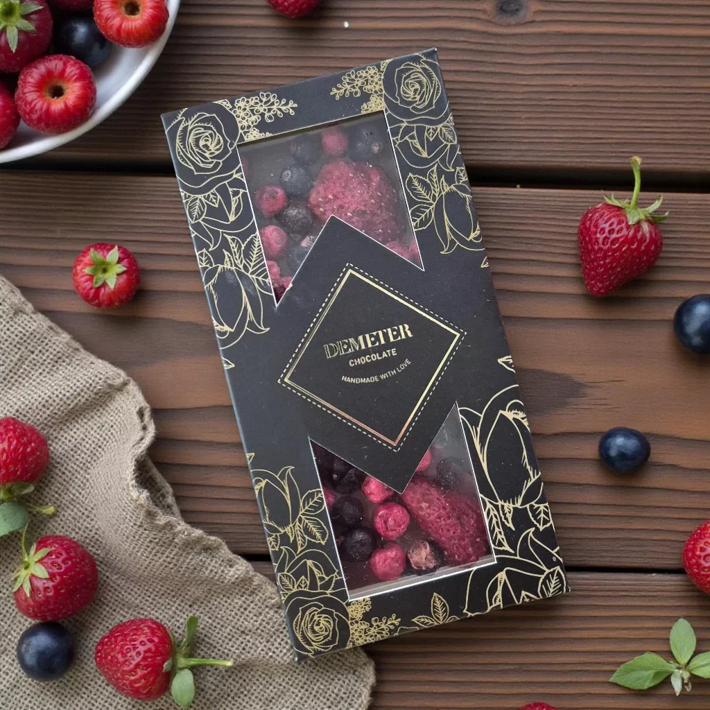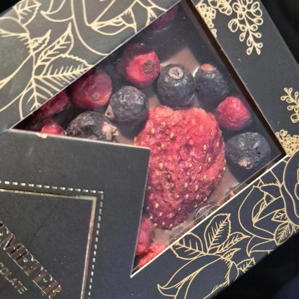 Az eper édes kényeztetését a piros és fekete ribizli fanyar eleganciájával ötvöztük, és mindezt egy prémium tejcsokoládéval koronáztuk meg, hogy igazán felejthetetlen ízélményt nyújtsunk.