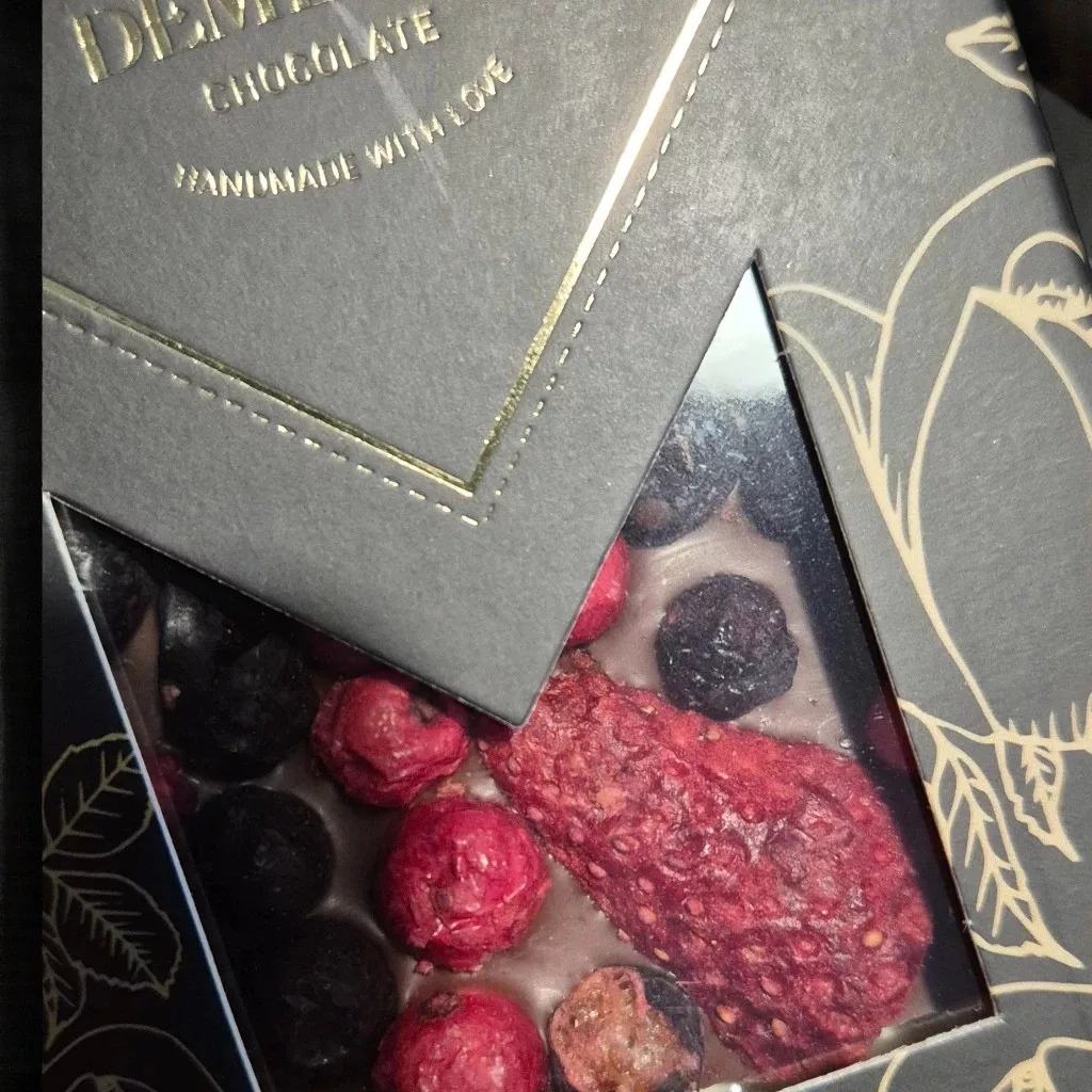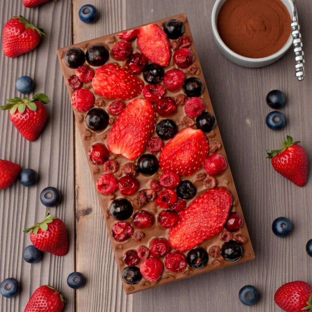 Tejcsokoládé piros gyümölcsökkel