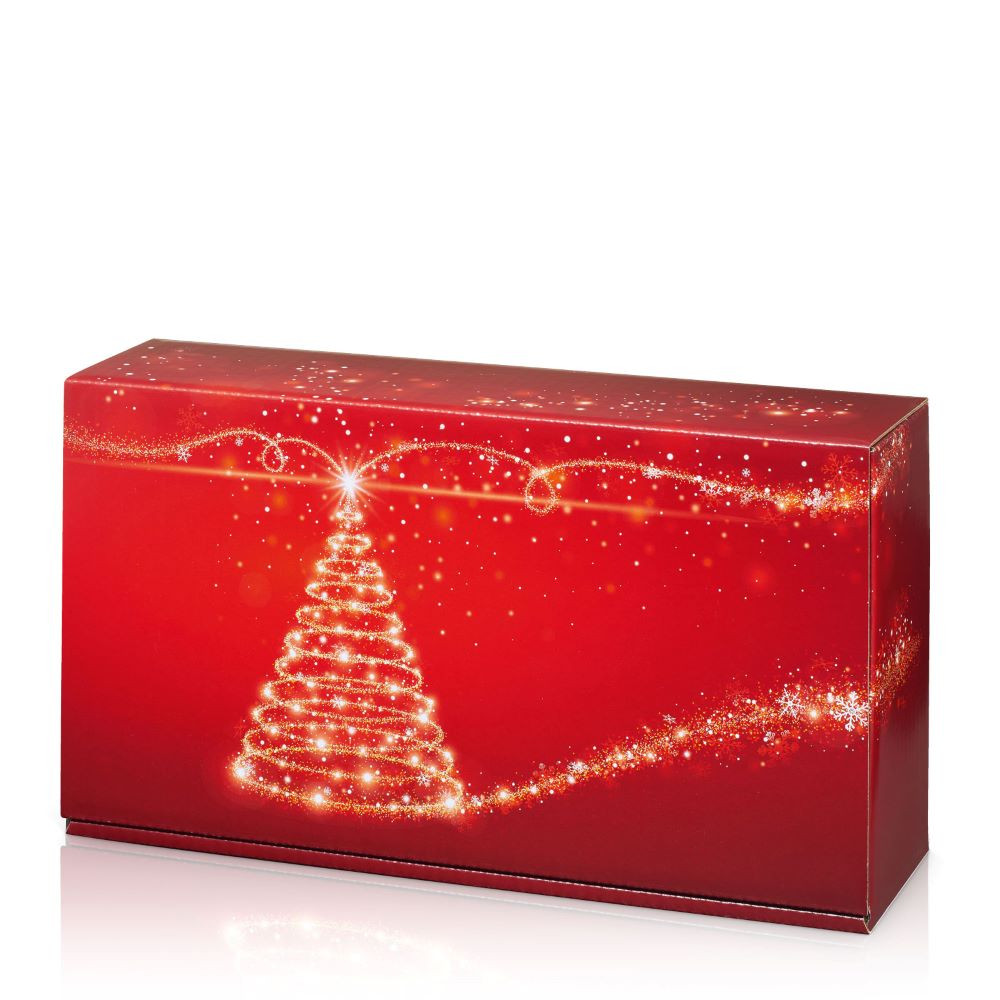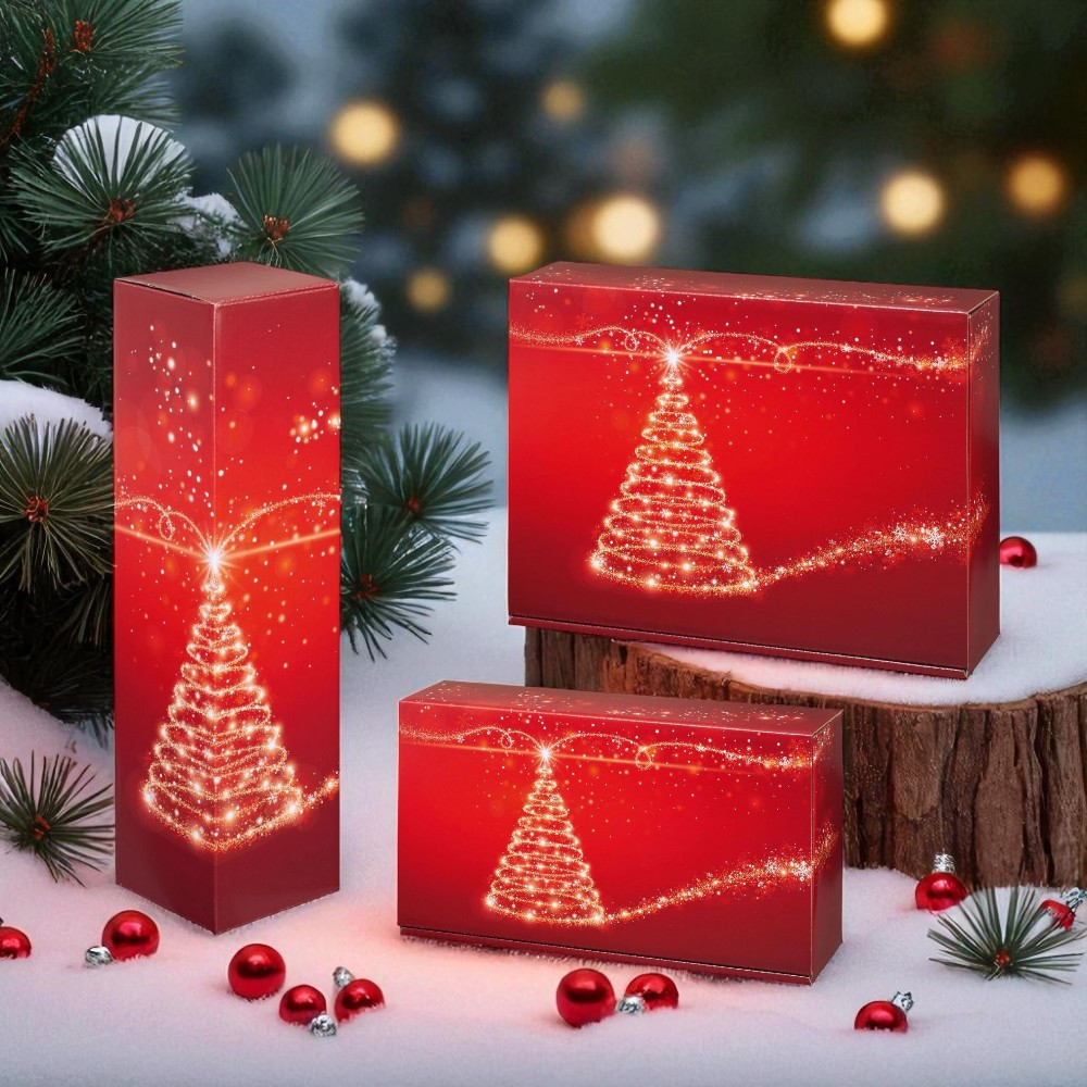Piros karácsonyi borosdoboz karácsonyfa mintával több méretben